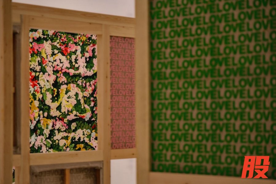 希望观众顺着这条叙事线索,从自身的情感经验出发,从记忆深处回望,并思考自我精神成长的路径。在策展结构上,展览并非线性推进,而是通过空间与场域的变化传递情绪——从第一单元的温暖与私密,到第二单元的明亮与开放,再到第三单元的深沉与反思,作品《睡在帐篷里的小女孩》源于新闻影像,再创作中叠加“LOVE”的书写,将现实中的瞬间转化为一种更具普遍性的情感表达。当观众感受到这种节奏变化时,也就能够理解艾敬作品背后的叙事逻辑。
