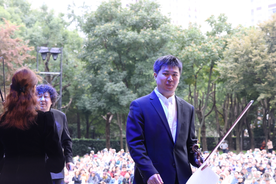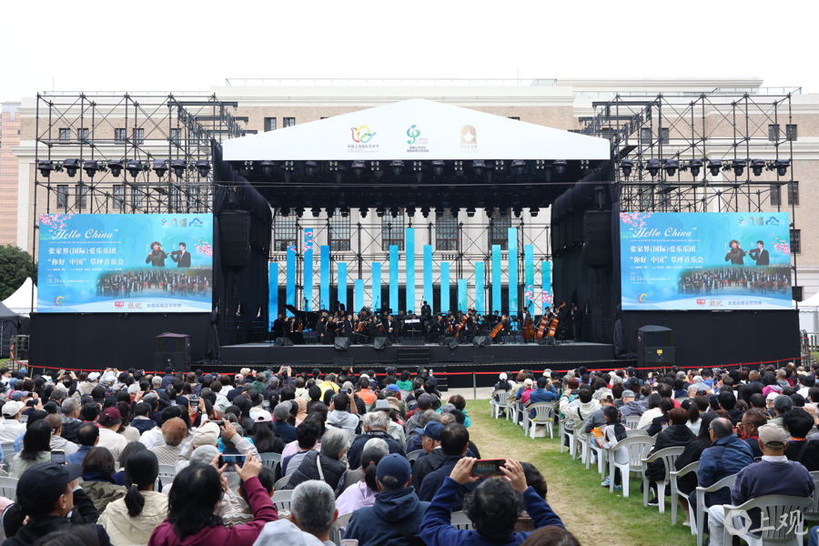 10月26日,张家界(国际)爱乐乐团受邀参加第二十四届中国上海国际艺术节“艺术天空”演出,在上海城市草坪广场举行音乐会,数百名观众免费预约至现场观赏。