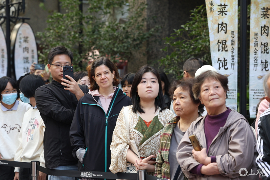 在思南公馆露天广场上演的法国沉浸式歌剧《罗密欧与朱丽叶》牵动人心。 等候演出的观众为商圈带来高人气。思南公馆副总经理范美辰说这场为商圈提升了35%的客流,“艺术+”效应凸显。