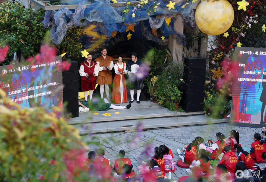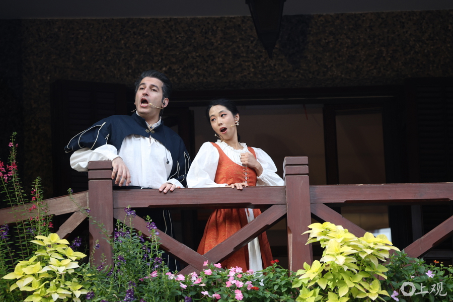 在思南公馆露天广场上演的法国沉浸式歌剧《罗密欧与朱丽叶》现场人气爆棚。