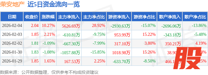 2月4日的资金流向数据方面,主力资金净流入5626.69万元,占总成交额28.92%,游资资金净流出2930.63万元,占总成交额15.07%,散户资金净流出2696.06万元,占总成交额13.86%。